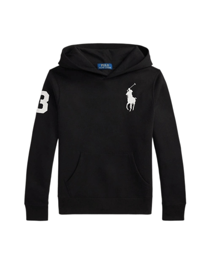 Felpa da bambino in misto cotone, BIG PONY, cappuccio, colore nero.