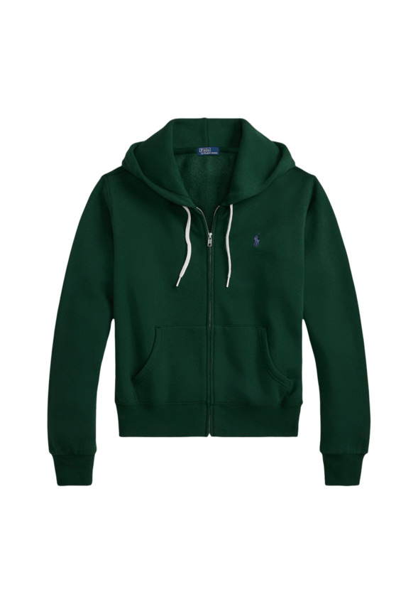 Felpa da donna in misto cotone con zip e cappuccio, colore verde pino