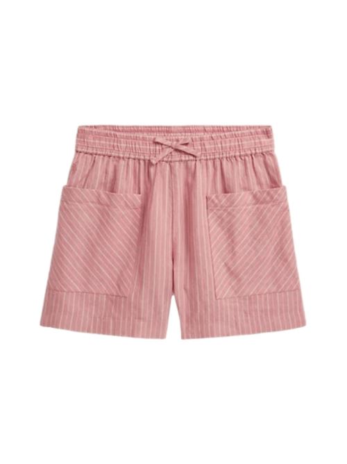 Perfetti per il guardaroba estivo delle bambine, questi short in lino e cotone uniscono comfort e stile in un capo pratico e versatile. Il tessuto leggero e traspirante è ideale per le giornate più calde, garantendo freschezza e libertà di movimento. Le righe tinte in filo donano un tocco classico e curato, mentre le ampie tasche applicate sul davanti aggiungono funzionalità. Il fiocco pre-annodato in vita regala un dettaglio dolce e giocoso, perfetto per un look femminile. Completati dallesclusivo pony ricamato sul fianco destro, questi short sono ideali per il tempo libero, le passeggiate e le giornate allaria aperta, con uno stile sempre ordinato e spensierato.