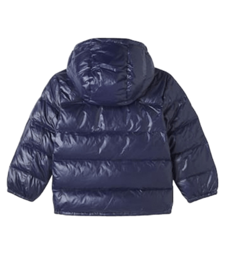 Giaccone da bambino in piuma d'oca, capuccio staccabile, logo applicato, colore refined navy.
