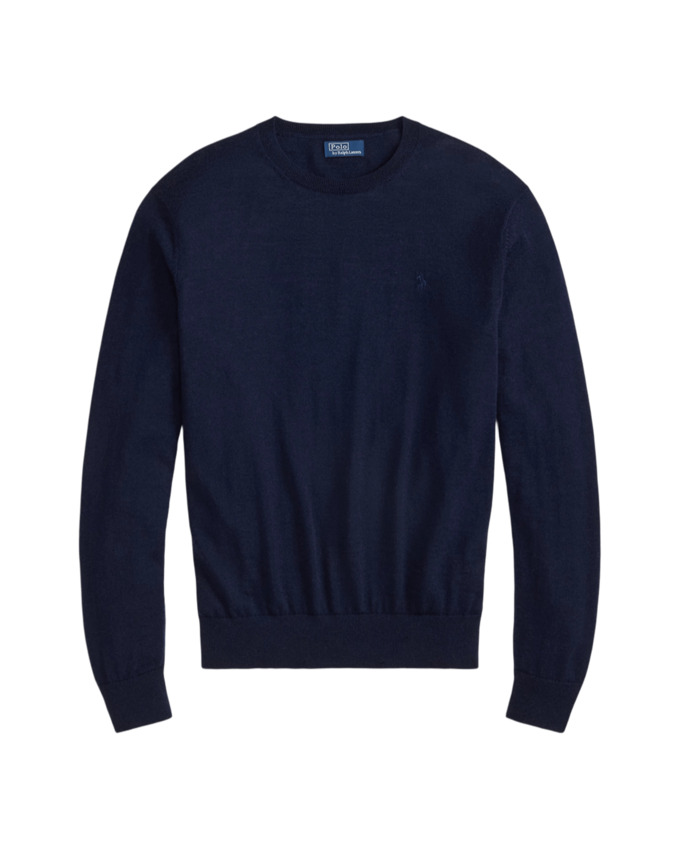 Realizzato con lana italiana di medio peso, questo classico modello a girocollo è rifinito con esclusivo pony ricamato sul lato sinistro del torace.