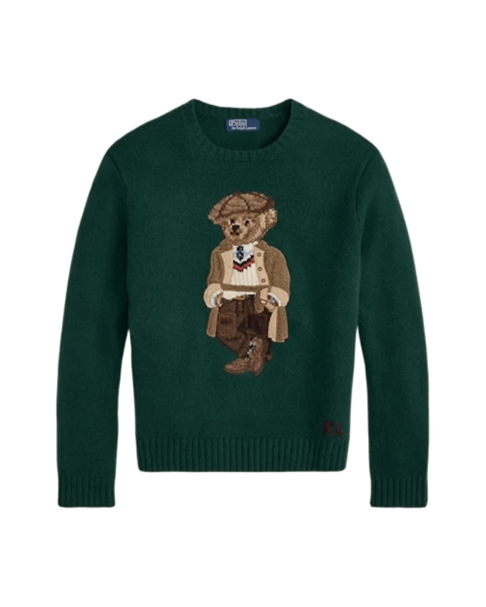 Questa maglia è impreziosita dall' iconico Polo Bear con un outfit Ralph Lauren a strati perfetto per le giornate fredde. Il modello è arrichito dalle iniziali del fondatore ricamate a mano sull'orlo sinistro.