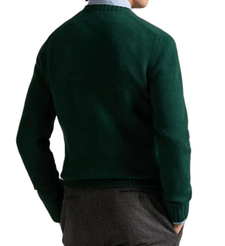 Maglia da uomo in lana misto cashmere con BEAR applicato sul davanti, colore verde pino vintage