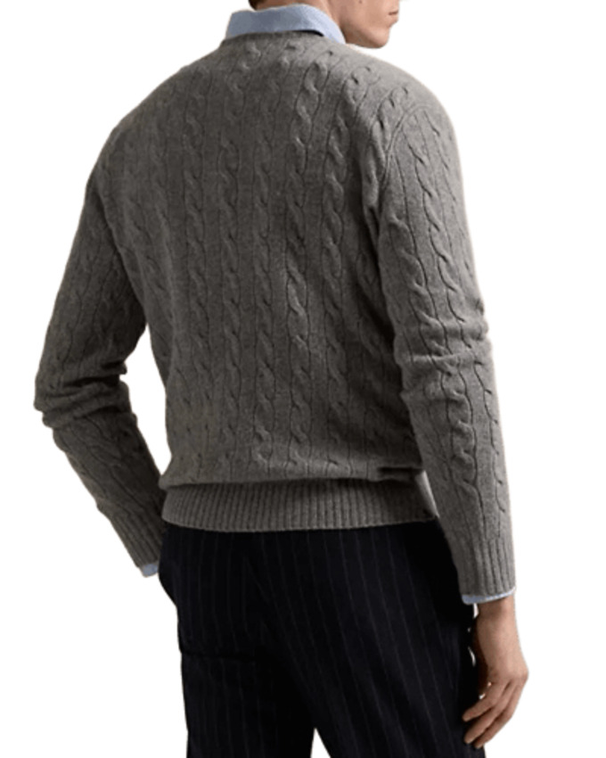 Maglia da uomo in misto lana e cashmere con lavorazione a trecce, colore grey