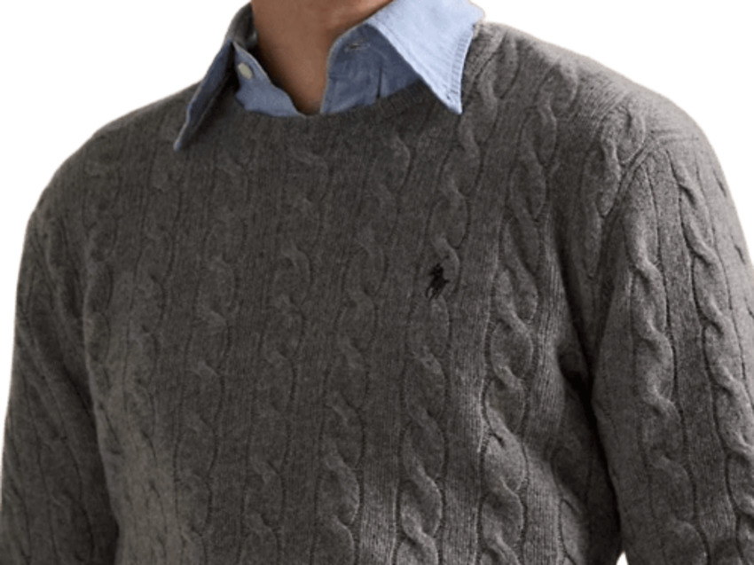 Questa interpretazione della nostra iconica maglia a trecce è realizzata con filato di lana italiana e cashmere.