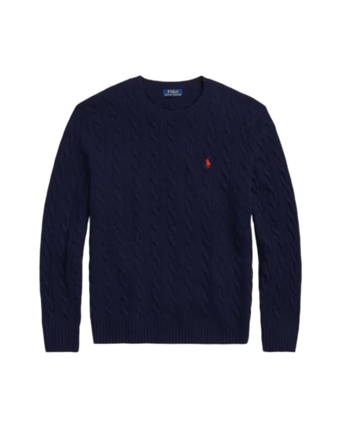 Maglia da uomo in misto lana e cashmere con lavorazione a trecce, colore hunter navy