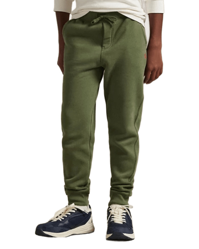 Pantalone da bambino in felpa di misto cotone, colore verde oliva menta.