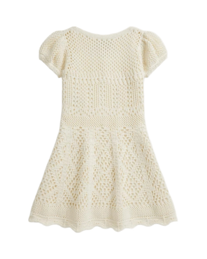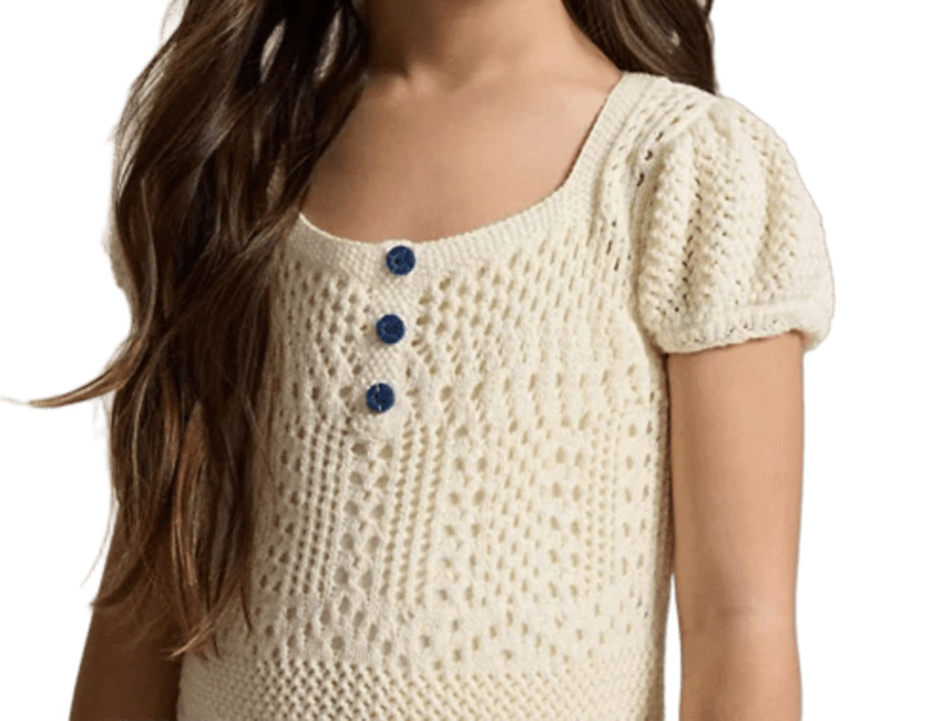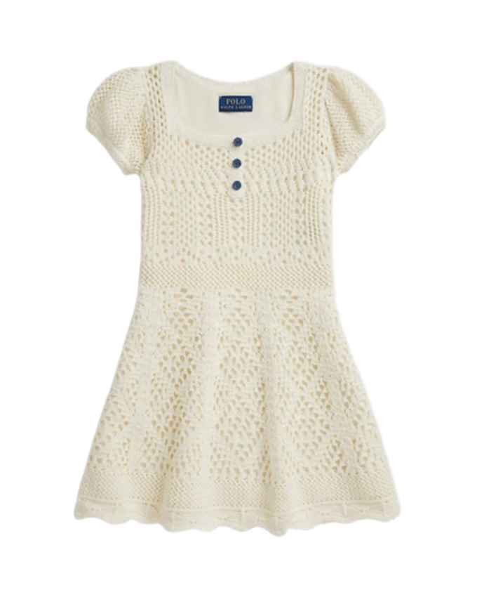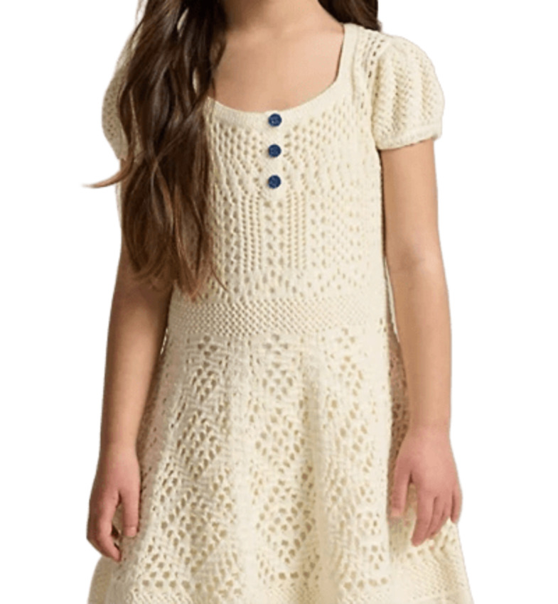 Dolce e leggero, questo abito in maglia di cotone pointelle è perfetto per accompagnare ogni momento della giornata delle più piccole. Realizzato in morbido cotone pettinato, è delicato sulla pelle e assicura comfort e traspirabilità. La linea a trapezio garantisce libertà di movimento, mentre i raffinati motivi pointelle all-over aggiungono un tocco romantico e giocoso. Lo scollo squadrato dona un dettaglio moderno, completato da un grazioso cannoncino decorativo con tre bottoni. Un capo pratico e versatile, ideale per la scuola, il tempo libero o le occasioni speciali con un tocco di stile.