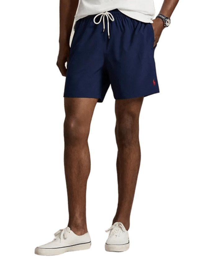 Questi boxer da mare stretch sono caratterizzati da una confortevole fodera in rete, fascia in vita elasticizzata con coulisse, tasche laterali all'americana e tasca con bottone sul lato posteriore destro con etichetta "Polo Ralph Lauren Swimwear".