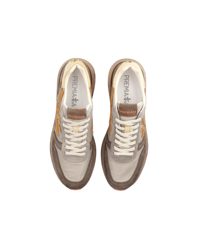 Sneakers Mick in mix di materiali e pellami di qualità. La scarpa è realizzata nella tonalità del marrone per uno stile casual. L'iconica silhouette è arricchita dal logo Premiata.