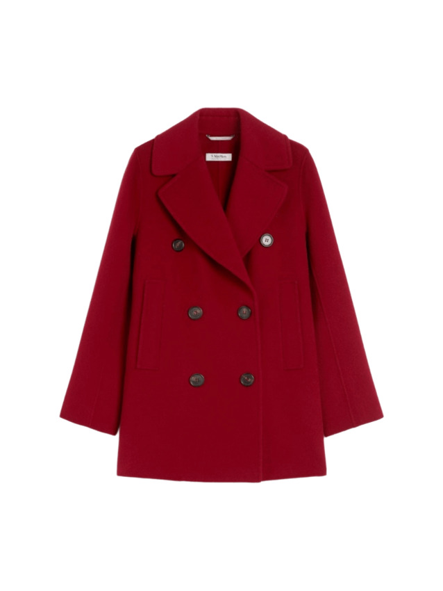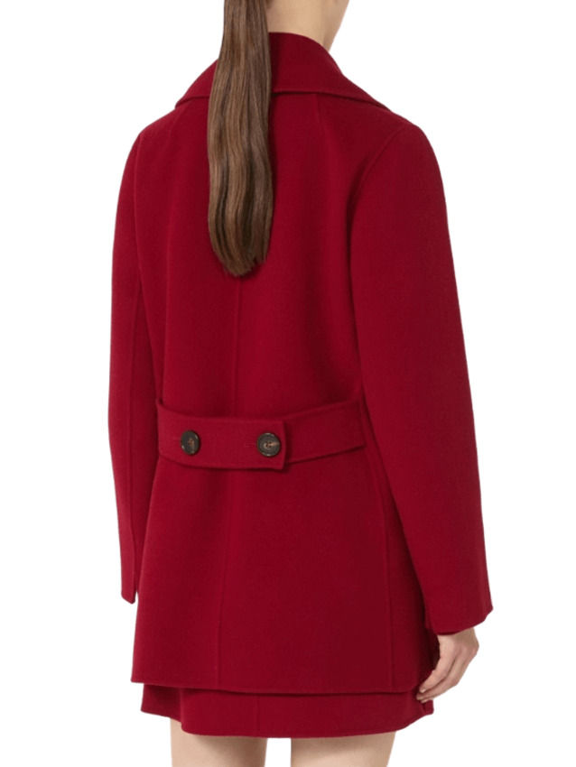 Cappotto caban da donna, doppiopetto in pura lana, colore rosso