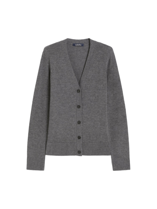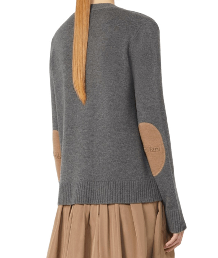 Cardigan maschile con toppe in maglia color cammello sui gomiti, colore grigio