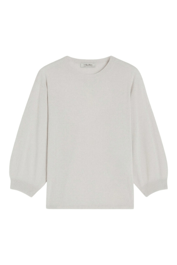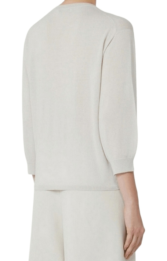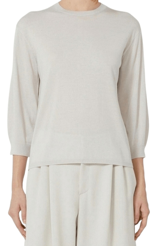 Maglia da donna in pura lana dalla linea dritta, manica a 3/4, colore bianco