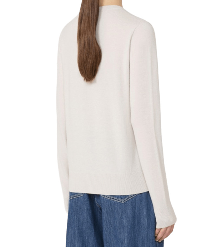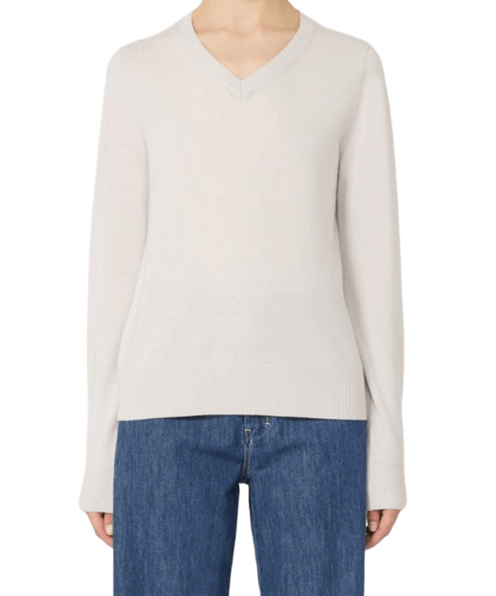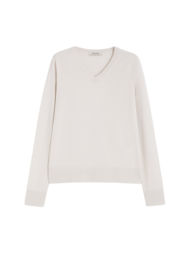 Maglia da donna in pura lana, scollo a V, manica lunga, colore bianco