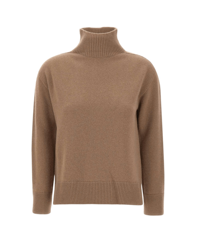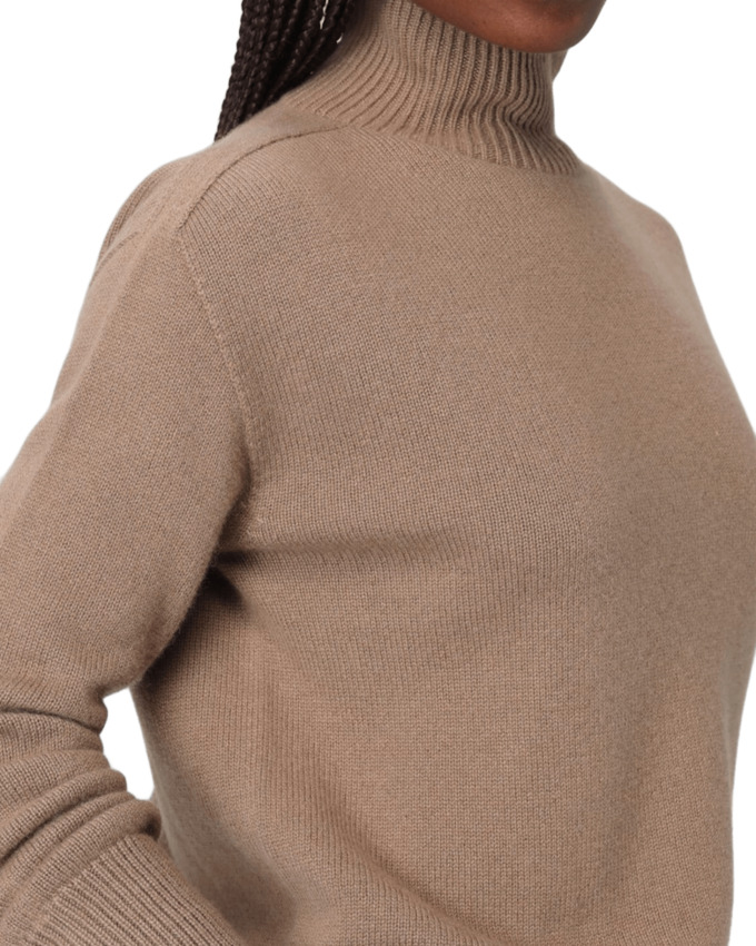 Maglia in filato di puro cachemire, dolcevita, lavorata senza cuciture per una vestibilità estremamente comoda e confortevole.Presenta collo alto, maniche lunghe con spalla scesa, piccoli spacchi laterali sul fondo e bordi a costine.