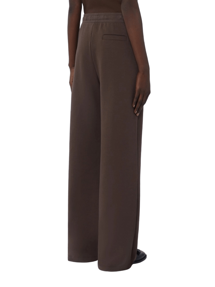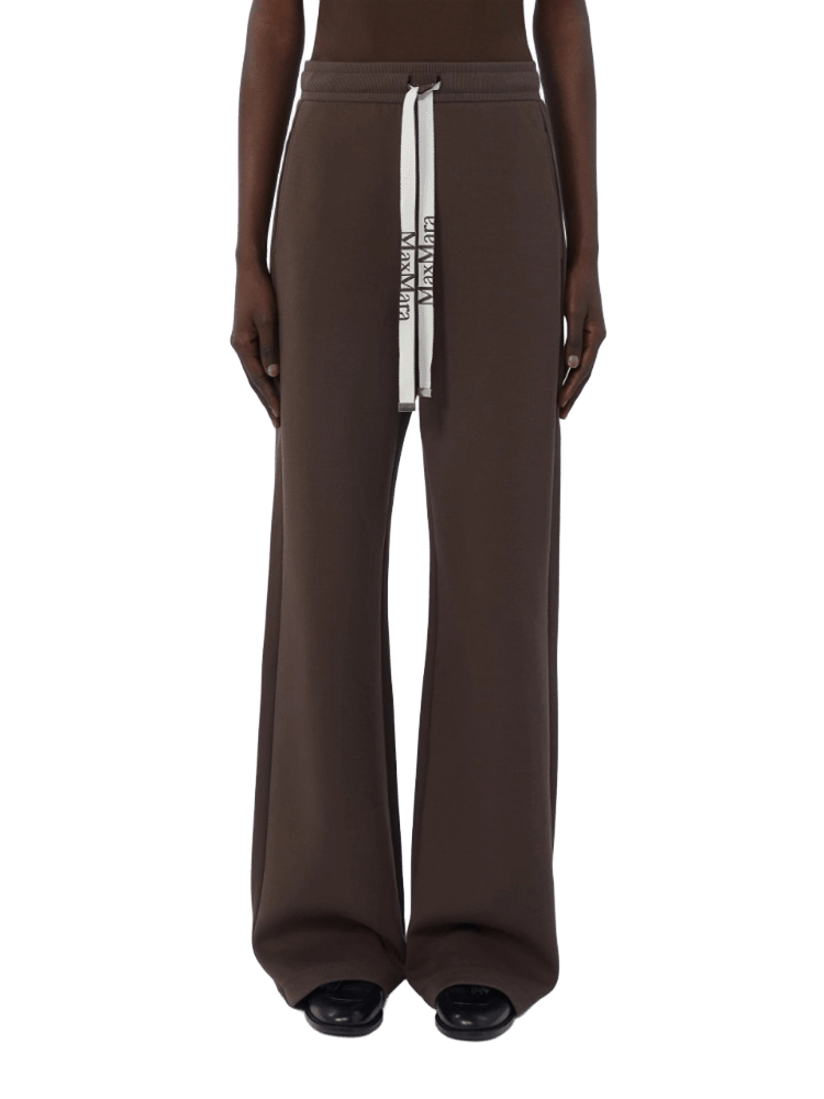 Pantalone in jersey di cotone dalla linea morbida e dalla mano tecnica. Presenta gamba larga, vita elasticizzata con coulisse in nastro jacquard, tasche inserite nei fianchi e taschino a filetto sul retro.