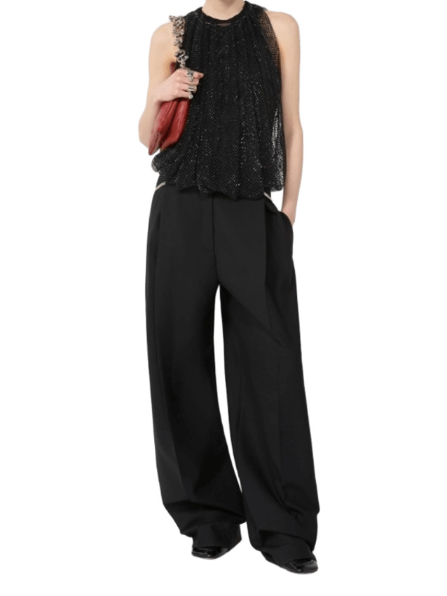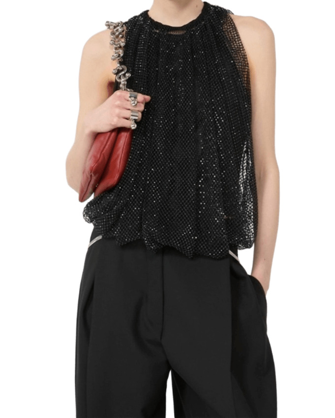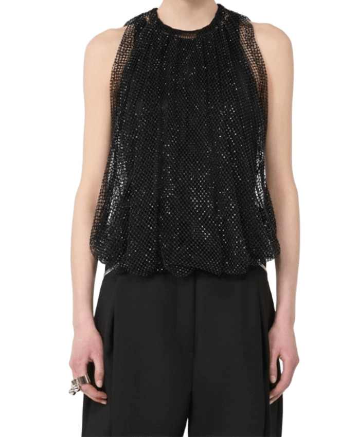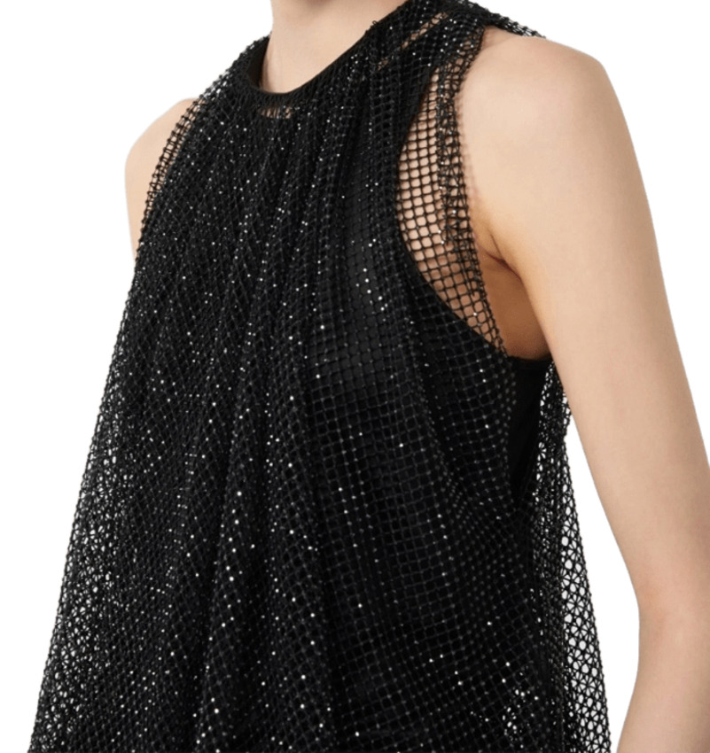 Top in rete con cristalli e canotta in jersey on tone