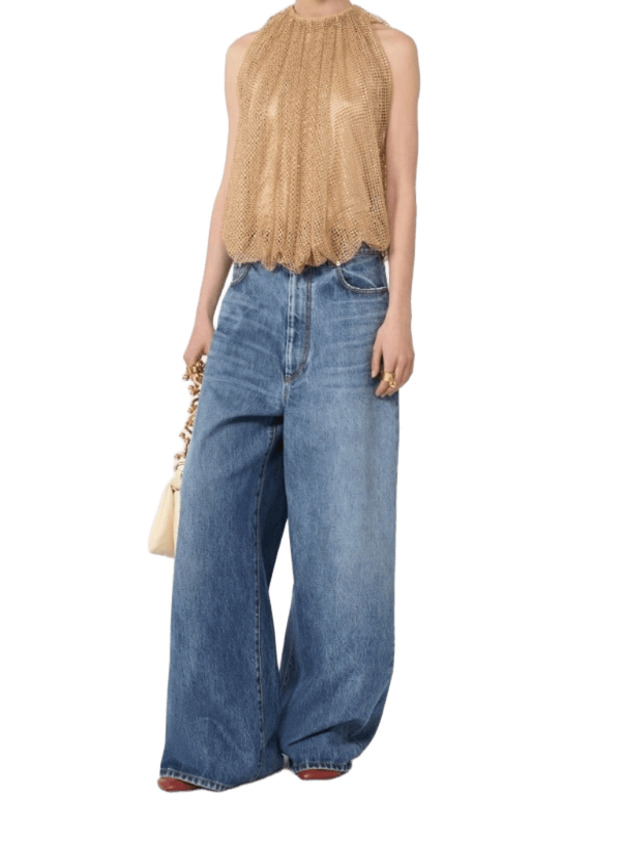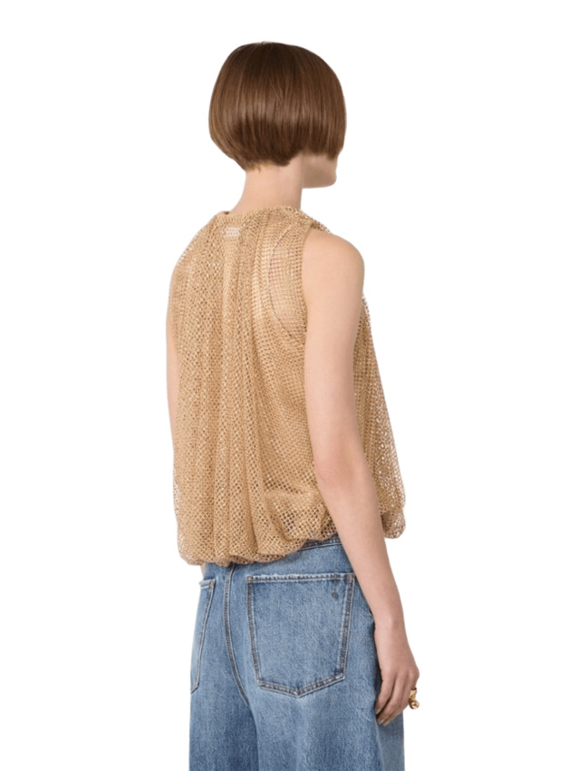Top in rete con cristalli e canotta in jersey on tone