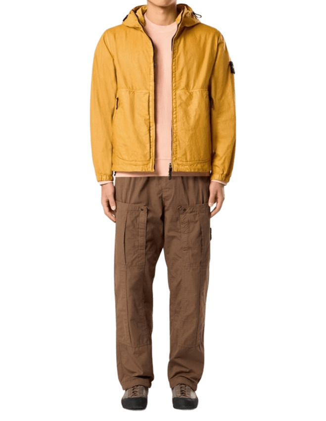Giacca con cappuccio in un innovativo tessuto Nylon Panama progettato per imitare le fibre naturali offrendo al contempo maggiore leggerezza e resistenza, dotato di tasche con zip e polsini elasticizzati. Modello tinto in capo.