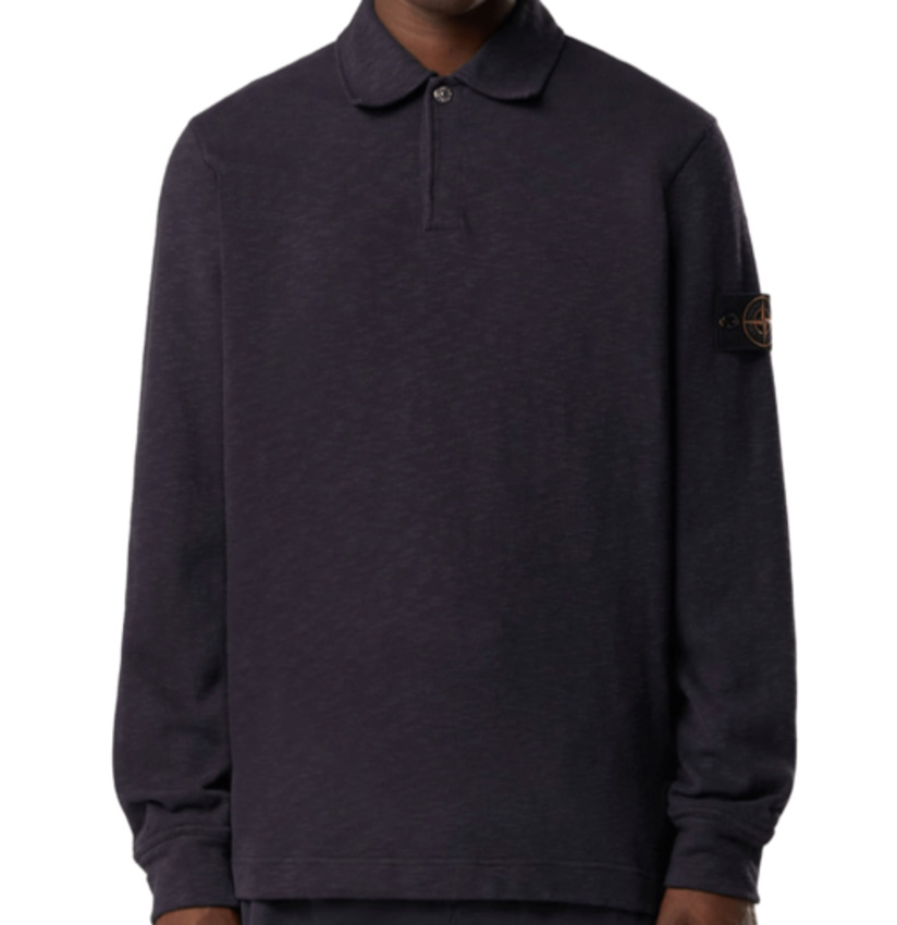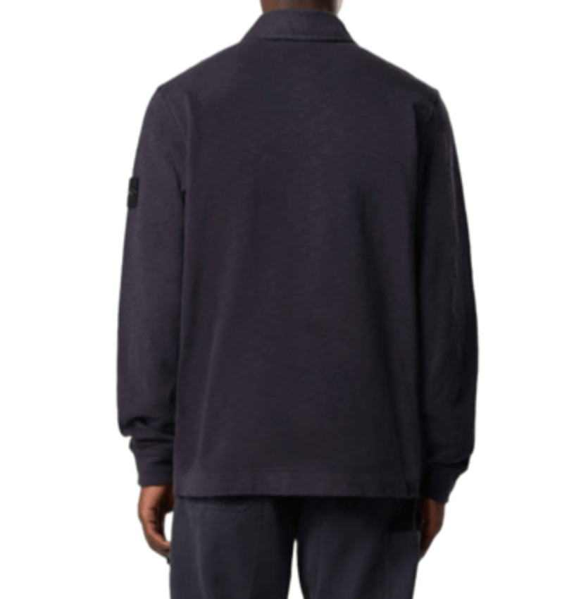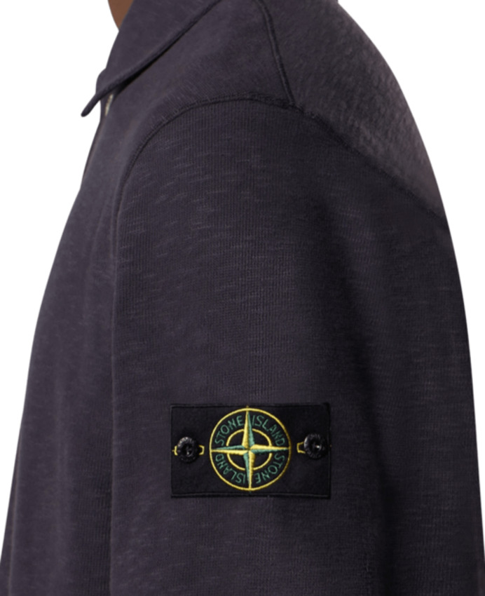 Felpa polo in jersey di cotone pesante garzato vanisé, con sottocollo in twill di cotone, chiusura al collo con automatici,uno visibile e uno nascosto. Intarsio sotto le braccia e sui lati. Badge Stone Island sulla manica sinistra. Fascia inferiore e polsini piatti.