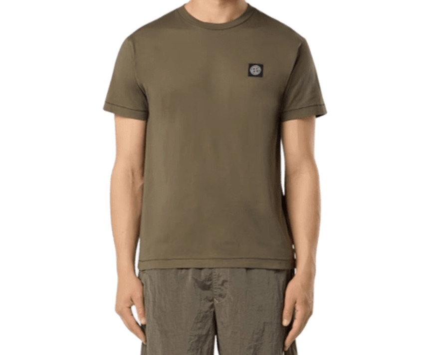 T-shirt da uomo, girocollo a manica corta in jersey di cotone colore verde militare