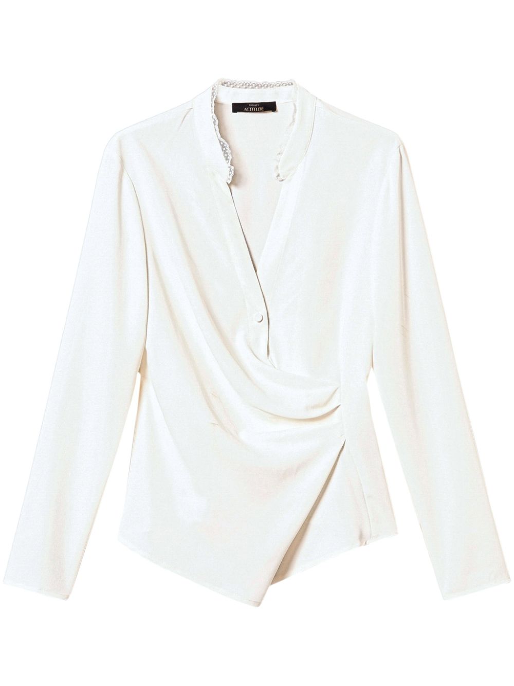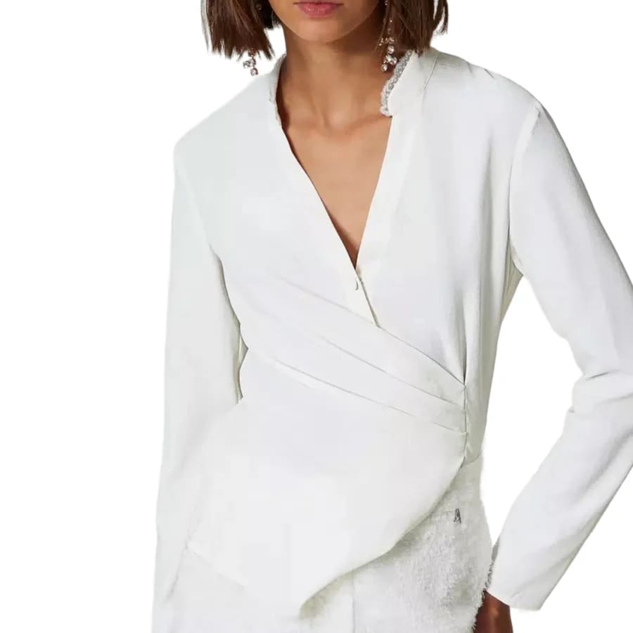 Blusa bianca da donna della collezione Actitude Twinset in misto poliestere riciclato in crêpe de chine