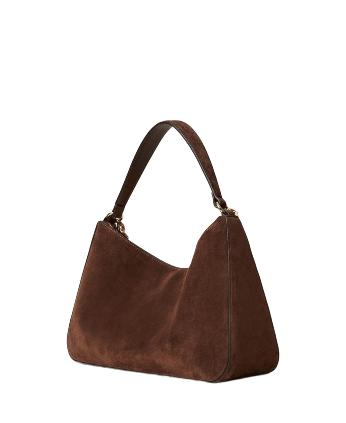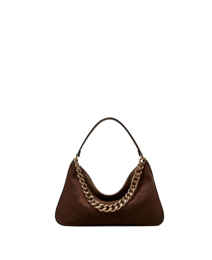Borsa da donna in pelle scamosciata, a mano/spalla, catena, colore coffee.