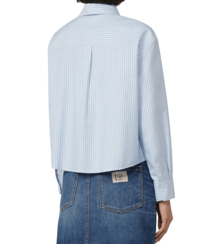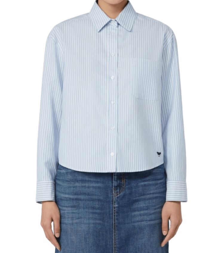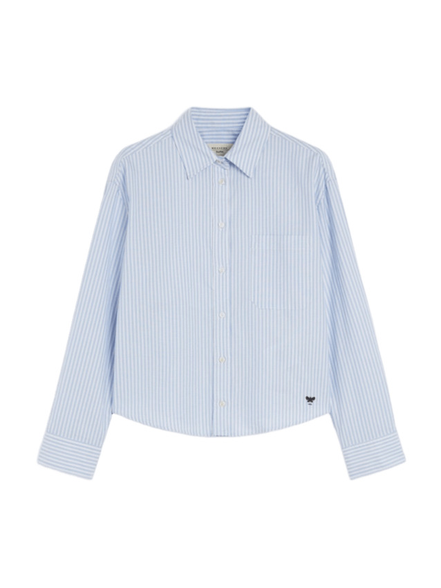 Camicia classica da donna dalla linea dritta in puro cotone a righe, bianco/azzurro