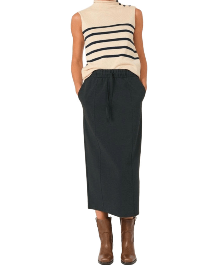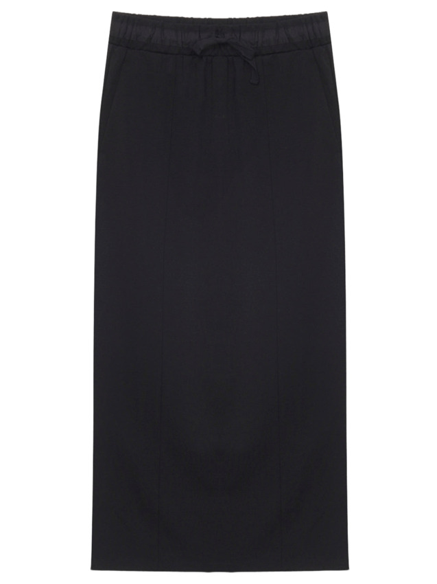Gonna lunga in jersey di cotone con motivo di tagli , colore nero