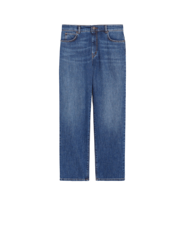 Jeans 5 tasche in denim autentico di cotone stretch, caratterizzato da una silhouette morbida anni '90 con gamba dritta. Chiusura con zip coperta e bottone a chiodo