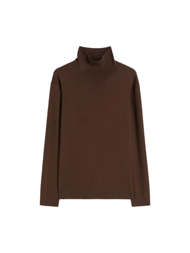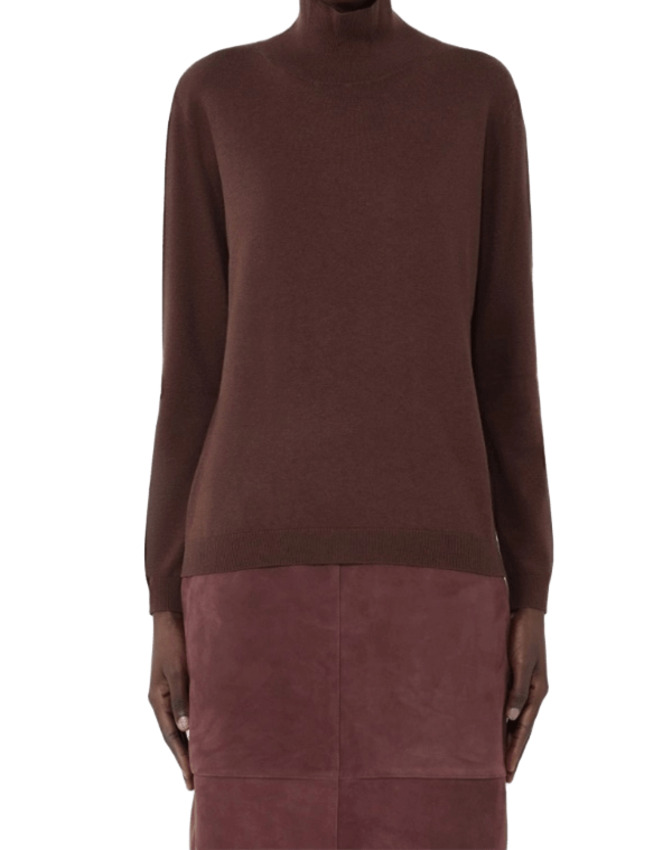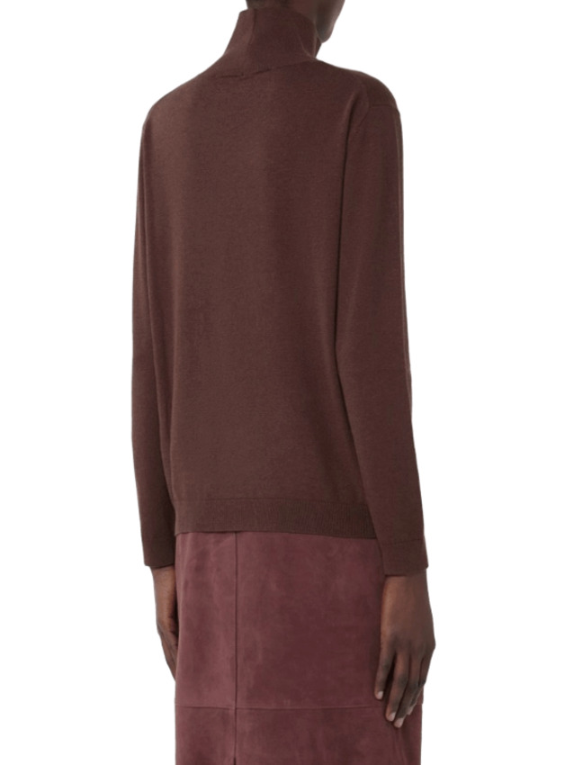 Dolcevita in filato di seta e lana con collo alto, maniche lunghe a giro e bordi rifiniti a costine.