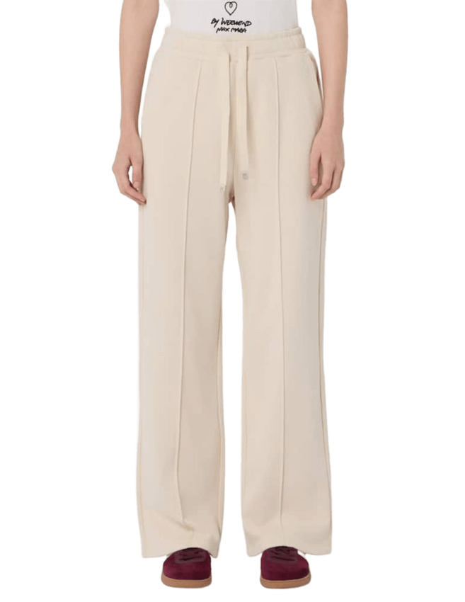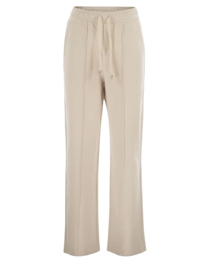 Pantalone da donna in misto cotone, con coulisse in vita, color avorio
