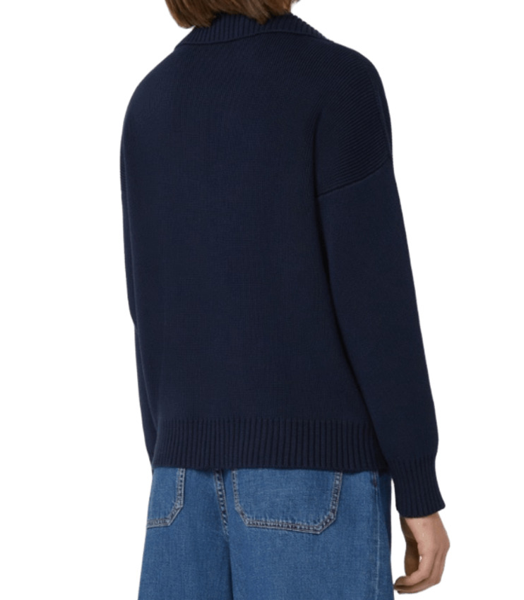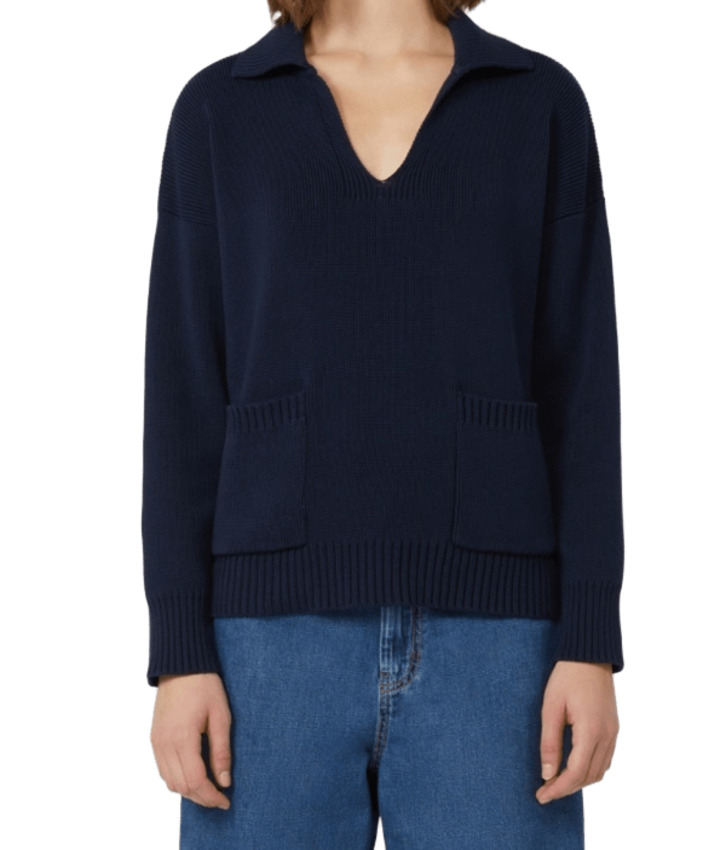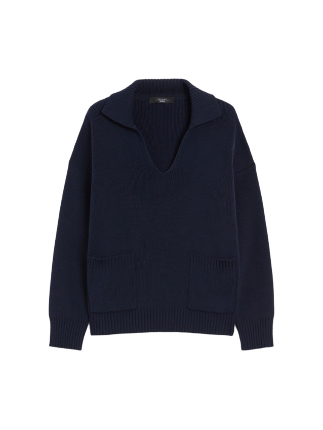 Polo da donna in puro cotone a maniche lunghe, colore blu