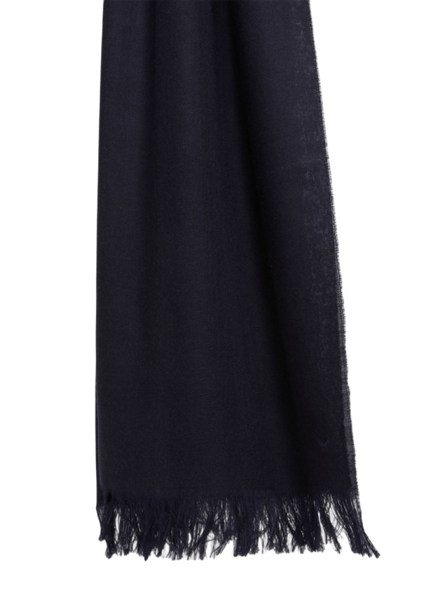Stola rettangolare in filato di pura lana tinta unita, rifinita con piccolo logo a farfalla ricamato in tono da un lato.