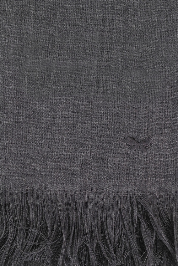 Stola rettangolare in filato di pura lana tinta unita, rifinita con piccolo logo a farfalla ricamato in tono da un lato.