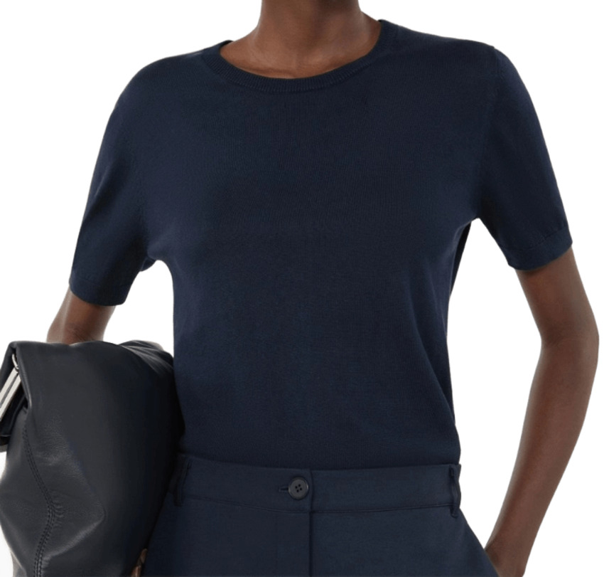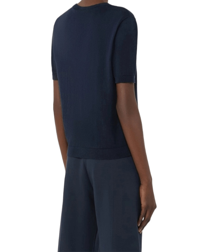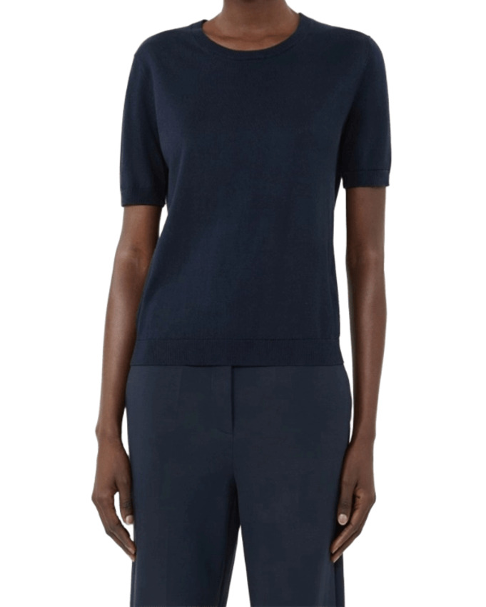 Maglia in filato di seta e cotone, girocollo, maniche corte a giro.