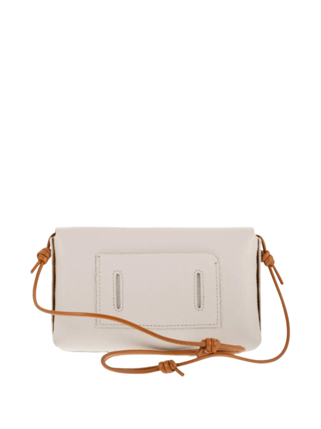 La chiusura turn lock rende immediatamente riconoscibile l'accessorio, la tracolla in pelle liscia tubolare unisce all'eleganza la praticità.
