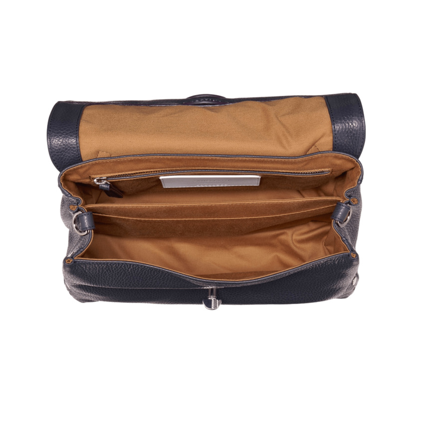 Lavorata artigianalmente in pelle martellata, questa borsa è dotata di tracolla regolabile in pelle che permette di portarla anche a spalla. Il modello è foderato internamente e completato da una comoda tasca interna.