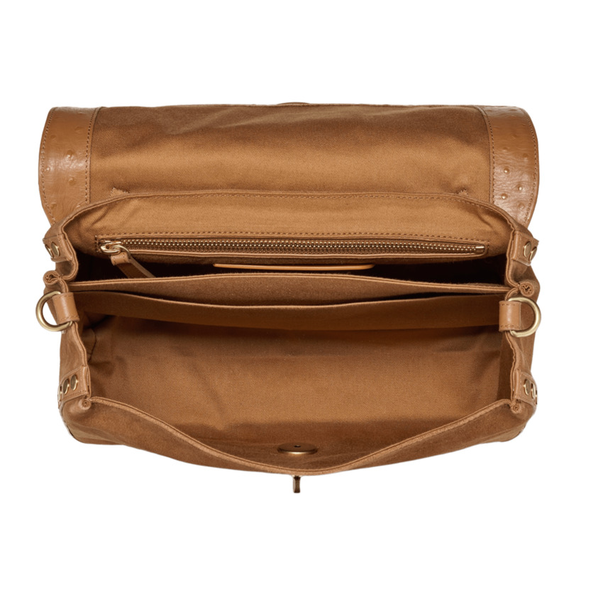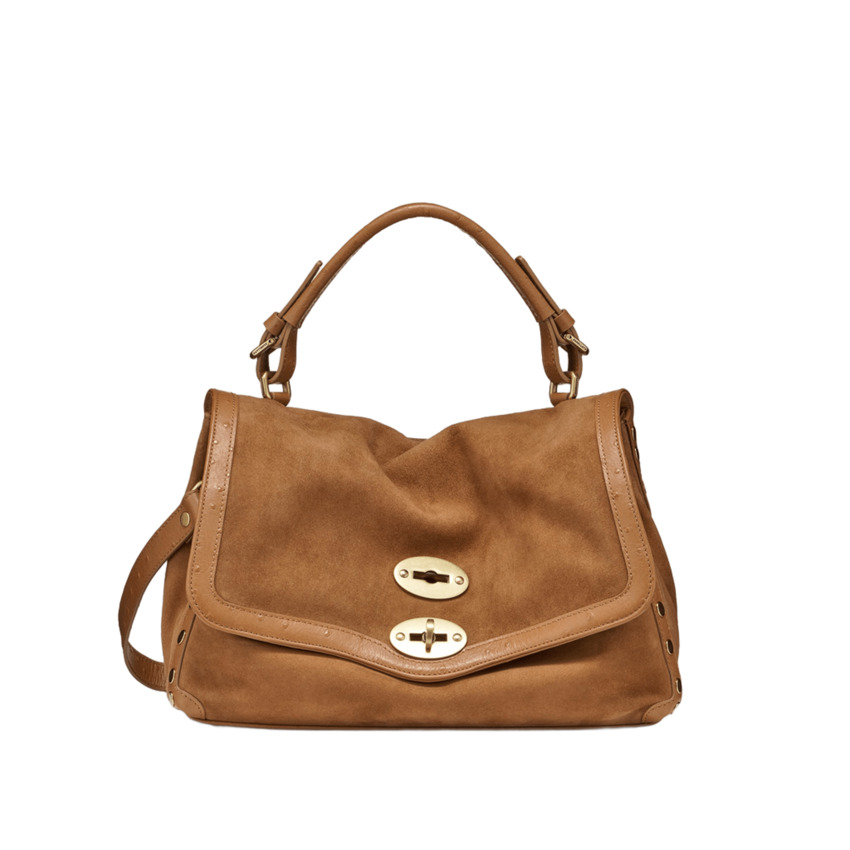 La Postina® è realizzata in pelle e dotata di una tracolla regolabile, sempre in pelle, che consente di portarla comodamente anche a spalla. Postina®, simbolo distintivo della Maison, si riconosce per la doppia chiusura e per la sua straordinaria versatilità.